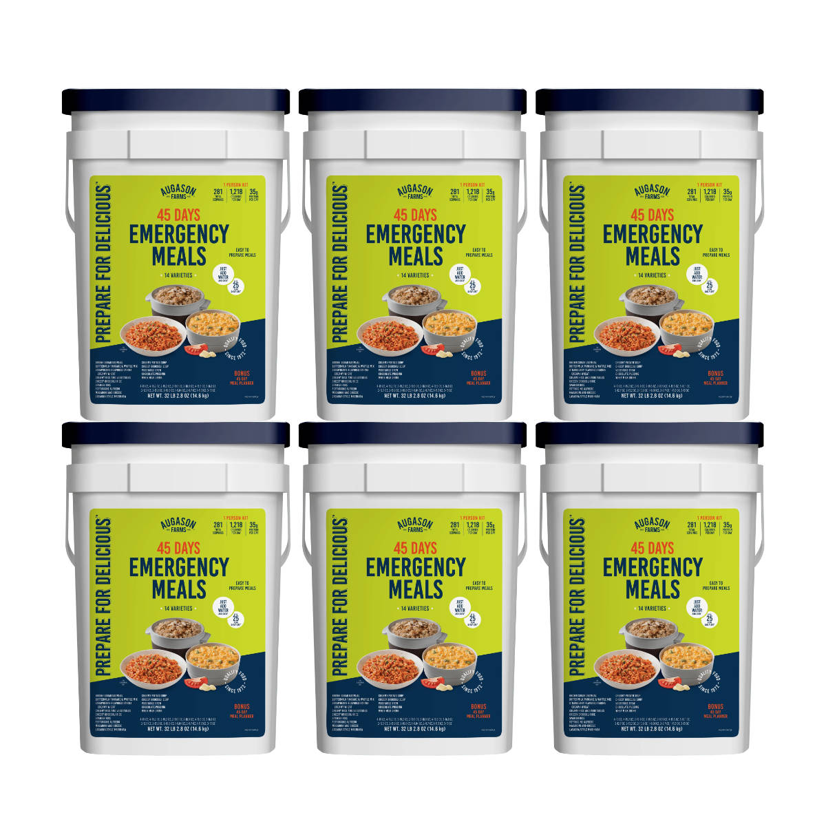 180 days (6 months!) of delicious easy-to-prepare emergency food for 1 person, or a family of 3 for two months, all packed in easily transportable, stackable, and watertight 7-gallon pails. Includes 3 meals per day, plus snacks and drinks. The shelf life (up to 20 years!) makes this bundle perfect for emergency preparedness. As an added bonus, the shelf life is on each package and not the sealed bucket, so if you need to open the bucket for any reason (or you just want to try a pouch!) you can rest easy knowing your meals will still be good for their full normal shelf life. It even includes a meal plan!